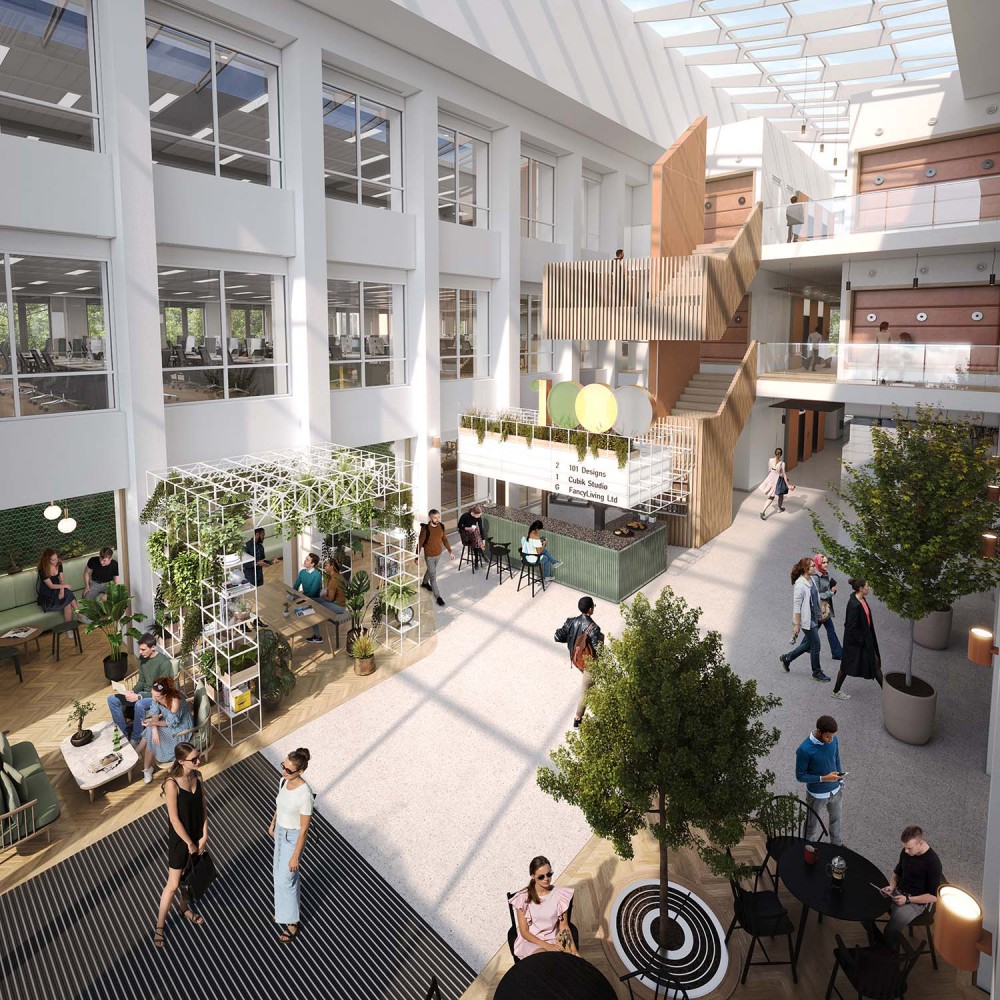 With its 75,000 sq ft, it has been redeveloped to create a collaborative workspace, which includes a new central atrium comprehensive of café facilities and formal and informal meeting spaces.