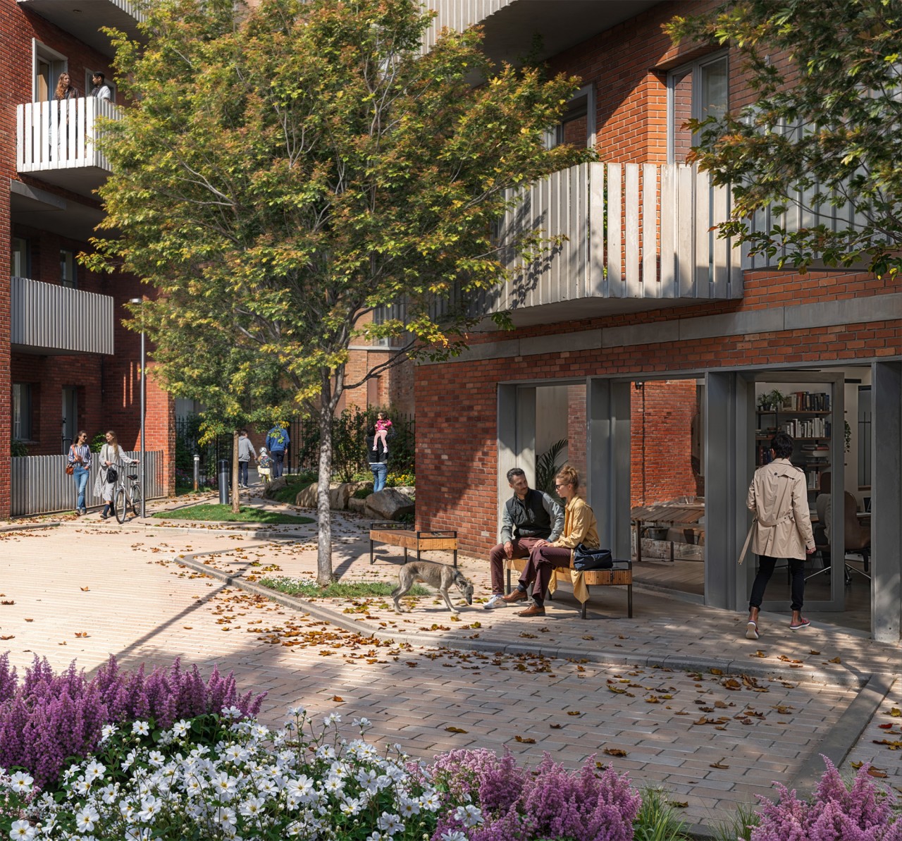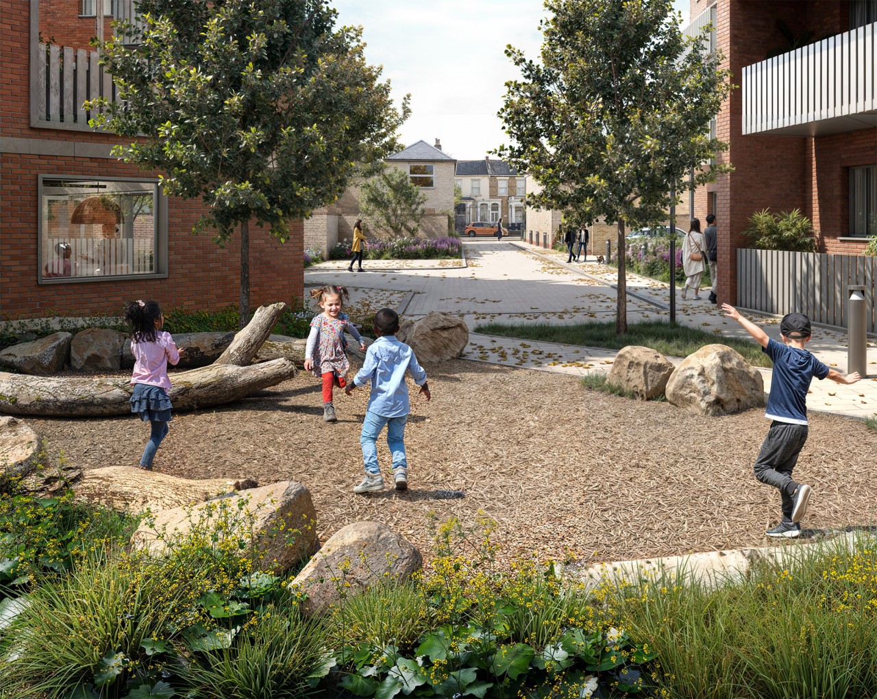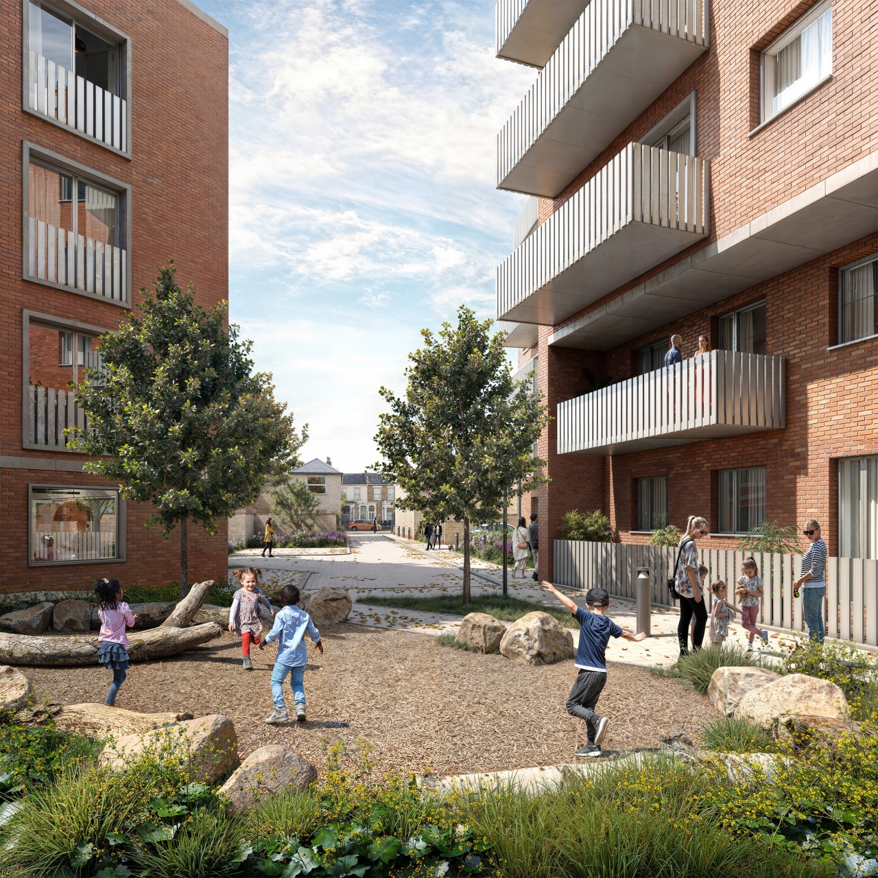 We were tasked with producing 3 exterior CGIs to support the planning application and effectively visualize the Horsey Park development. Two of the CGIs focus on the architectural design and the relationship between the new buildings and the adjacent development, showcasing how it integrates with the surrounding area while maintaining privacy for residents. The third CGI highlights the central courtyard, which features a playground for families living in the development. This visualization emphasizes the communal aspects of the design, showing how the courtyard serves as both a functional and inviting space for residents to enjoy. Detailed visualizations are essential in illustrating how the project thoughtfully balances communal living with privacy and connectivity, offering a compelling narrative that enhances the likelihood of planning approval.