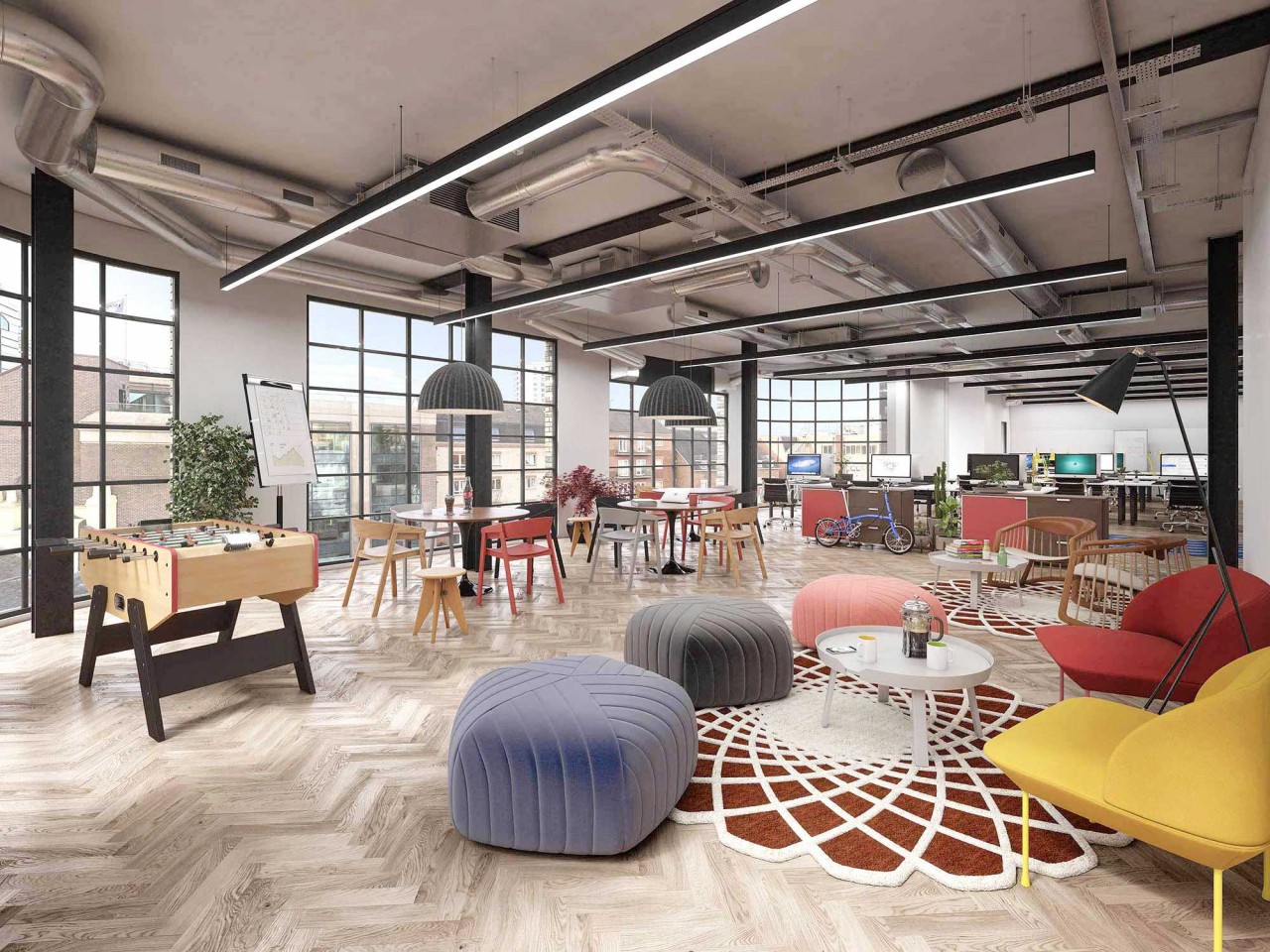 Eye-kon produced marketing CGIs for this newly refurbished warehouse-style workspace in Reading.